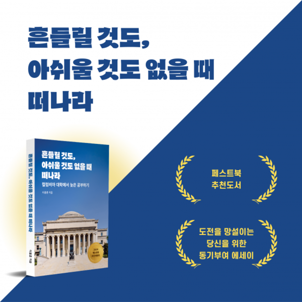 이홍훈 작가의 ‘흔들릴 것도, 아쉬울 것도 없을 때 떠나라: 컬럼비아 대학에서 늦은 공부하기’가 페스트북 추천 에세이로 선정됐다.