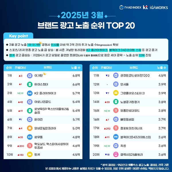 ▲2025년 3월 브랜드 광고 노출 순위 TOP20