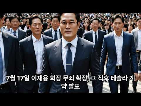 7월 17일 이재용 회장 무죄 확정, 그 직후 테슬라 계약 발표.